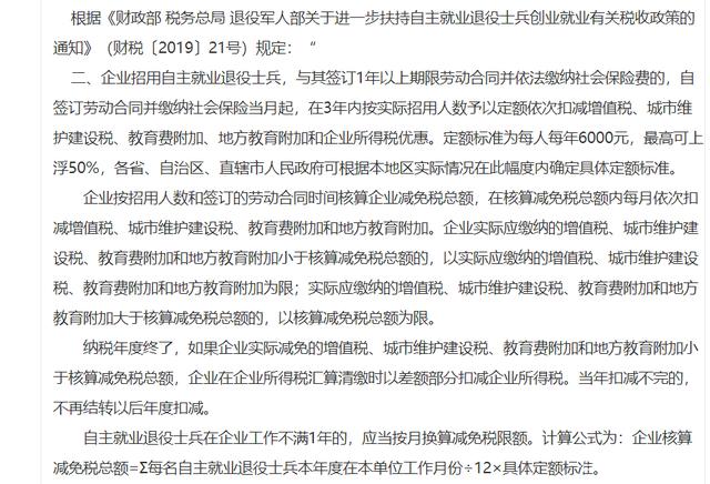 那么该企业2019年可抵减的增值税税额为100*6000=60万,那么该企业抵减之后需要缴纳增值税为0,城市维护建设税为0,教育费附加为0,地方教育费附加2万,企业所得税为25万。 三、招聘残疾人 企业招聘残疾人,可以免除企业残保金的缴纳。安置残疾人可以享受增值税税额的返还政策,对缴纳的增值税可以根据招聘残疾人员的数量按当地基本工资水平的4倍进行返还。同时,在计算企业所得税时,对残疾人员支付的工资,可以100%在税前进行加计扣除。