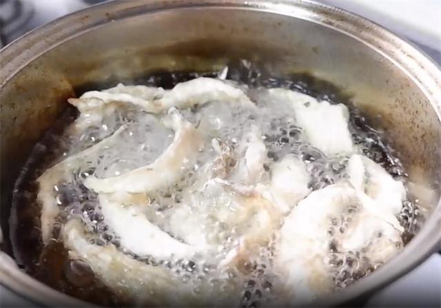 5.挂好糊之后,起锅加多一些的油,这里一定要中火,然后把蘑菇分多次炸,把平菇炸定型,炸至金黄之后就可以捞出了。