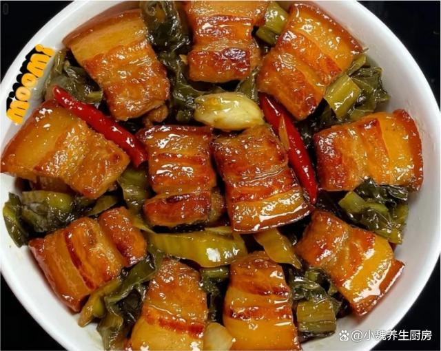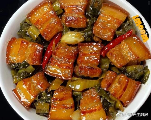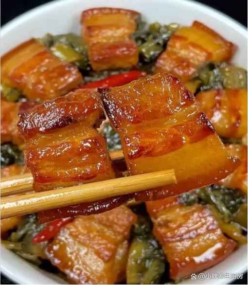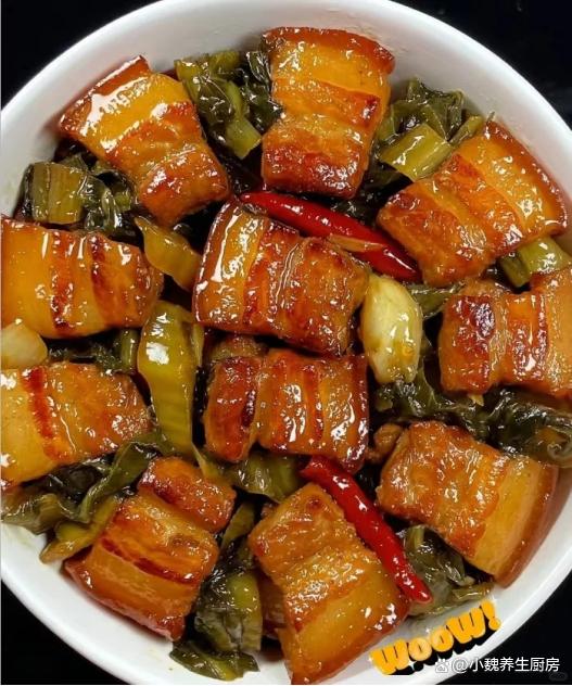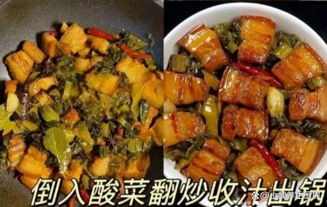 时间过得太快了,夏天刚刚过完,秋天就来临了,而且已经到了中期,夏天天气热可以吃一些凉菜,但是秋天人的各项机能减退,从而影响我们的食欲,每天晚饭都不知道吃啥,吃外卖感觉不太干净,餐馆的饭菜虽然好吃,但是不实惠,还是在家简单做几个菜肴,营养搭配,都是自己爱吃的。今天分享小编的拿手菜之一——酸菜焖五花肉,这菜是北方人的最爱,15分钟就可以搞定,吃起来特别满足,学会给家里人露一手吧。许多人第一次吃这道酸菜焖五花肉,到底要如何烹饪呢?不如跟着小编来了解下吧。胃口不好的人,不要慌!建议多吃这道菜,解馋开胃,全家人都爱吃。  【酸菜焖五花肉的详细食谱】 准备一些食材:选购新鲜五花肉450克左右(五花肉是猪肉的种类之一,五花肉有肥有瘦,肉质吃起来不会腻,我们家只有过年过节才吃,每次孩子嘴馋也会做着吃),少许食用油,冰糖20克左右,一大块生姜,若干根小葱,鸡精和味精少许,少许清水,几片香叶,干辣椒若干个,八角和桂皮少许,生抽和老抽少许,蚝油一小勺,酸菜40克左右(或者选择辣白菜,酸菜是用芥菜经过特殊加工,吃起来酸脆开胃,搭配五花肉是绝配),冷水和温水少许,胡椒粉半勺,其他佐料。 正确制作顺序:第一步:提前准备好五花肉,酸菜和其他食材,先把干辣椒去蒂洗净,香叶都洗干净,八角和桂皮洗净,备用。第二步:把生姜切成片,酸菜用清水冲洗干净,控干表面水分,切成长度相同的段,放在碗中备用。 第三步:把五花肉洗净,刮掉猪皮表面的脏东西,切成大小相同的块,锅中放入五花肉块,放入姜片和葱段,加上少许料酒和清水,把五花肉焯烫一会儿,去掉表面浮沫,盛出备用。 第四步:锅底提前烧热乎,加上少许食用油,将五花肉铺在锅底,两面都煎至金黄,让油脂也煎出来。 (www.Ws46.com) 第五步:再加上一勺生抽,两勺老抽,半勺蚝油,放入几片香叶,干辣椒,蒜瓣和八角,桂皮,加上适量清水没过食材,焖煮40分钟左右。 第六步:大火收汁,倒入一些酸菜,用锅铲翻炒几下,加上鸡精,味精,食盐和胡椒粉调味,快速翻炒均匀,关火装盘,这道酸菜焖五花肉就可以开吃了,实在是太下饭了。 食用小贴士:酸菜焖五花肉是我们家餐桌常吃的菜肴,吃起来肥而不腻,虽然起到开胃的作用,但是本身脂肪含量略高,想要减肥的小伙伴,不能天天吃,可以隔三差五吃一次,既可以改善胃口,也不会长肉长膘。 酸菜焖五花肉是一道超级开胃的菜肴,选用新鲜五花肉和酸菜制作而成,肉质新鲜,肥而不腻,搭配酸菜是绝配,风味独特,喷香扑鼻,让人直流口水,吃过一次还想吃。网友们,你们是否掌握这道酸菜焖五花肉的制作技巧呢?(文中的配图都出自网络)