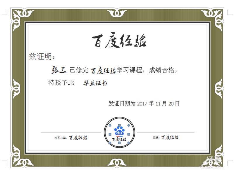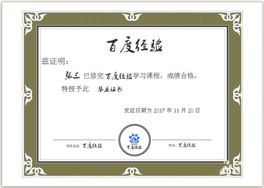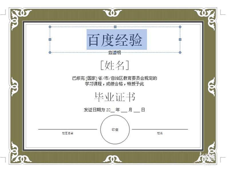 2、下载成功后,显示证书,双击“你就读的高中”文本框,修改成自己的内容。