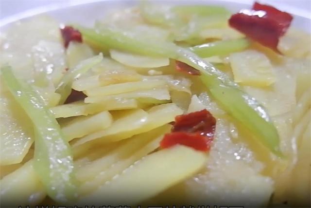 准备食材: 土豆、芹菜、食用油、蒜末、干辣椒、清水、酱油、盐、陈醋 具体做法: