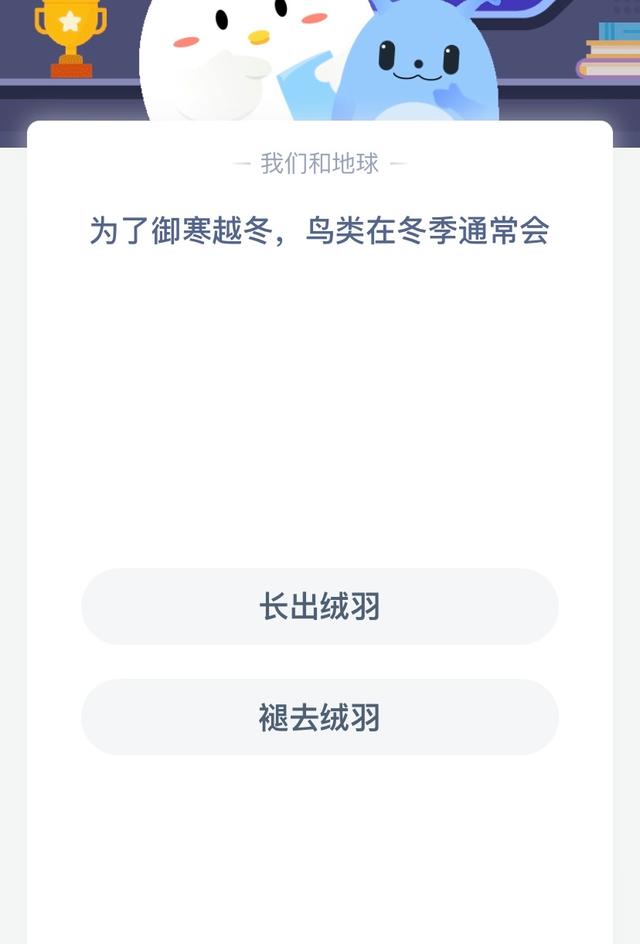 当前位置:首页>科技>为了御寒越冬,鸟类在冬季通常会?蚂蚁庄园每日答案
