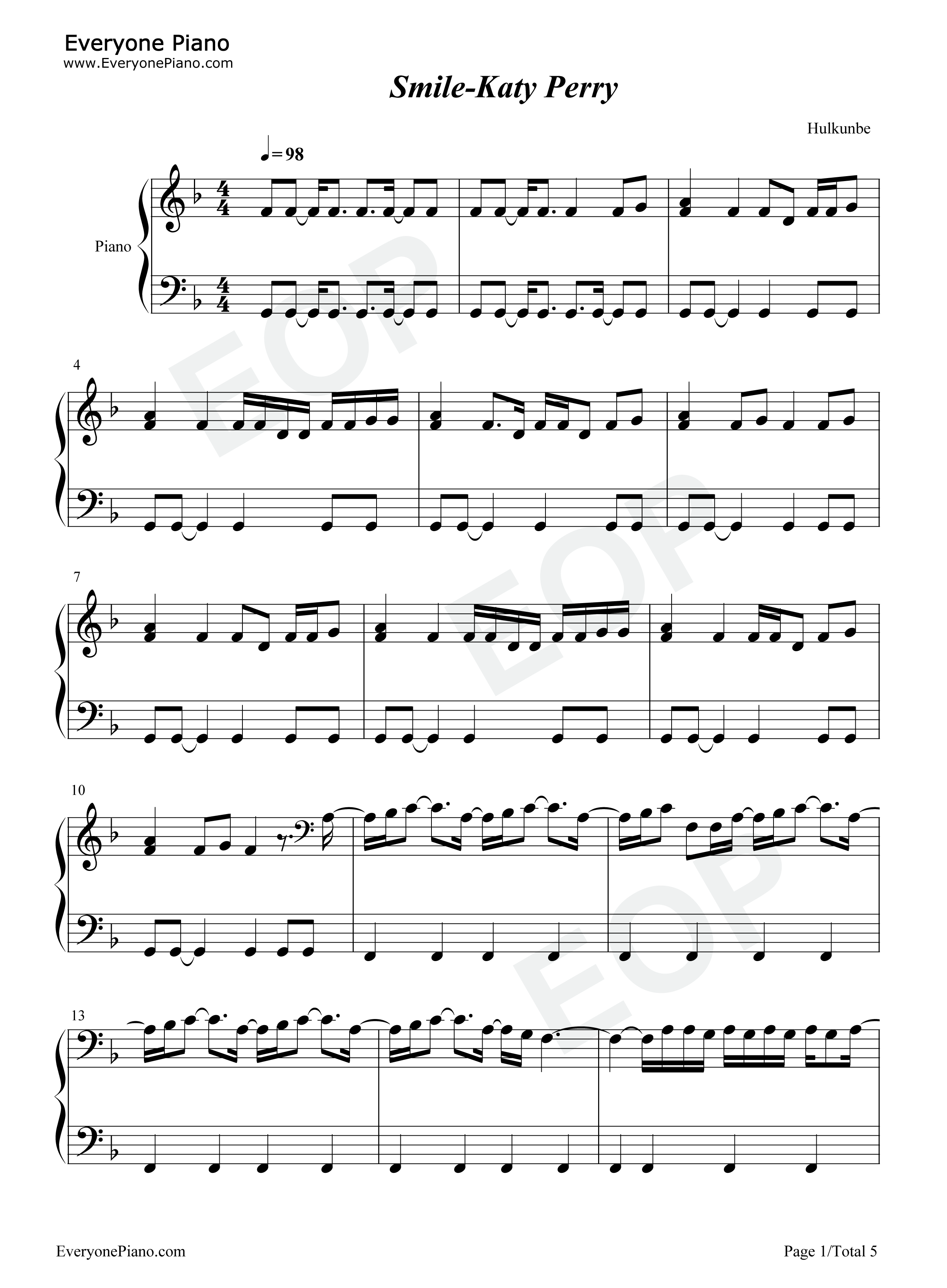 当前位置:首页>娱乐>Smile钢琴谱-Katy Perry