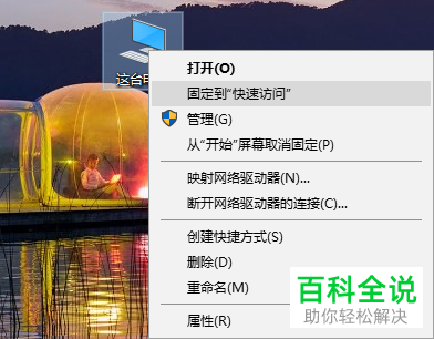2.第二步,鼠标左击这台电脑按钮,然后右击弹出以下界面。