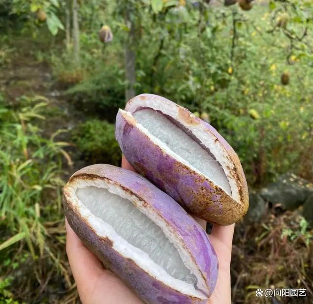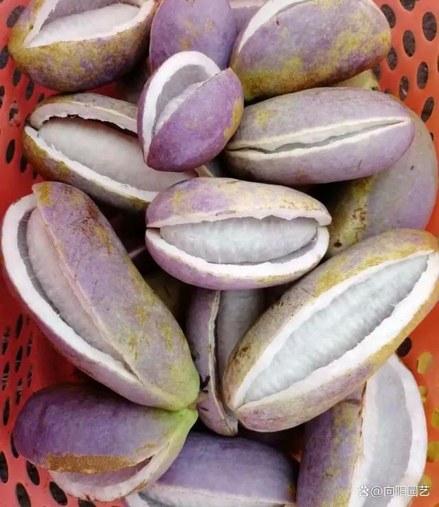 8月份的中旬就可以完全成熟,成熟的果子,外表皮是紫色的,果子裂开之后,里面的果肉是白色的,果肉中夹杂着黑色的种子,吃起来的口感软糯香甜,有一种清香的味道,唯一的一个缺点就是里面的黑色种子数量比较多。