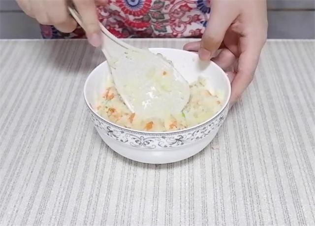 4.然后加入胡萝卜、葱花和火腿肠,再加入适量的盐,也可以加少量的黄油,然后拌匀。