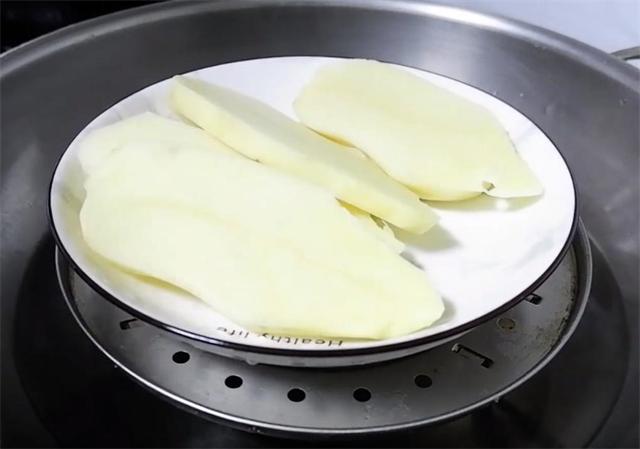 1.今天我们来做一个不一样的土豆泥——芝士焗土豆泥。土豆洗净切片,切好之后,我们放入锅中把土豆蒸熟。