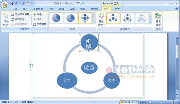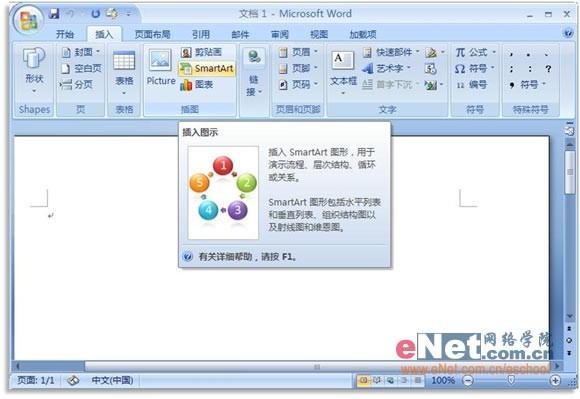 Word2007增加了“SmartArt”工具,是指插入SmartArt图形,用于演示流程、层次结构、循环或关系。SmartArt图形包括水平列表和垂直列表、组织结构图以及射线图和维恩图。熟悉这一工具,可以使你更加快捷地制作出的精美文档。