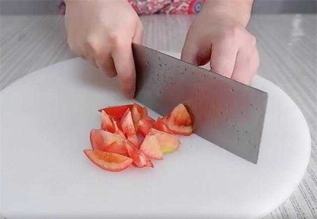 2.再切一个西红柿,西红柿可以切的稍碎一些。