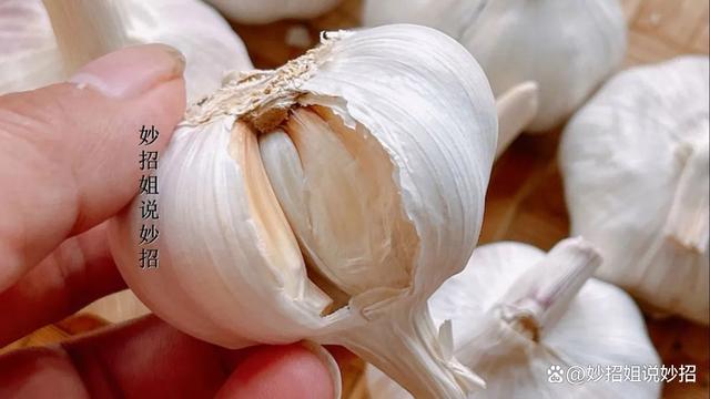 第五种:重量轻的大蒜。 挑选大蒜时,可以通过重量来判断其好坏。紧实饱满,放在手上有一定垂手感的大蒜,是比较新鲜的好大蒜。如果大蒜的重量比较轻,说明蒜瓣水分含量比较低,一般是存放售卖了很长时间,水分蒸发了。这样的蒜瓣没有脆爽的口感,反而会比较寡淡无味。