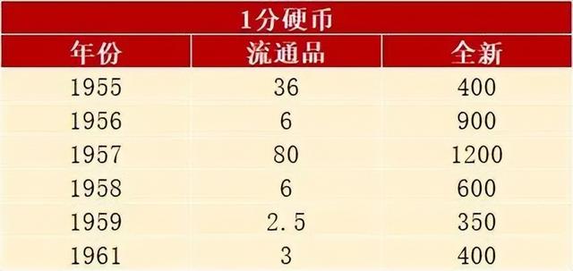 所以这6个年份很值得大家去寻找,具体是什么年份呢?就是1961年及之前的1分硬币,它们就算是旧的也翻了很多倍了,具体表现我也给大家整理好了表格,就是没有妥善保存的旧硬币。