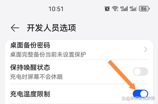 接着,返回到上一页,找到“系统和更新”,点开后找到“开发人员选项”,点击进去。在这个页面就可以找到充电温度限制的功能,这个功能在出厂的时候是默认关闭状态的,我们需要手动开启。开启之后,充电的温度就会控制得更加严格,从而有效地减少手机充电时的发热情况。