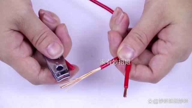 妙用四:剥电线。 在电线的外面都是有一层软胶皮的,当遇到需要剥电线的时候,很多朋友可能会选择使用打火机来烧,把外皮烧软后再趁热拉扯,就能将外皮剥掉了。但这一操作不仅容易烫伤手指,还可能会破坏电线内部结构。其实剥电线,指甲刀就可以发挥作用。我们先把指甲刀拆开,这样指甲刀的开口会变大。然后把需要剥线的电线放在指甲刀的刀口位置,接着我们用手指按压住指甲刀并将指甲刀旋转一圈,这样电线的外皮就被破坏了。