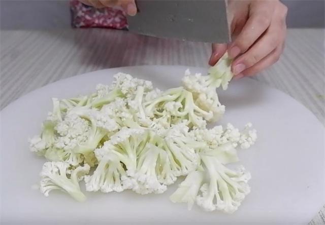 1.今天做一道好吃的素鲁花菜,做好后浓香好吃下饭。准备适量的菜花洗净,切成小块。