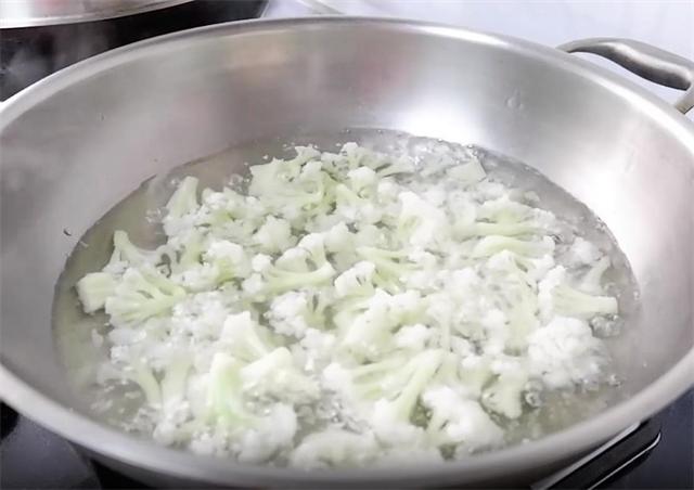 4.然后把菜花焯下水,开水下锅煮两分钟之后就可以捞出了。