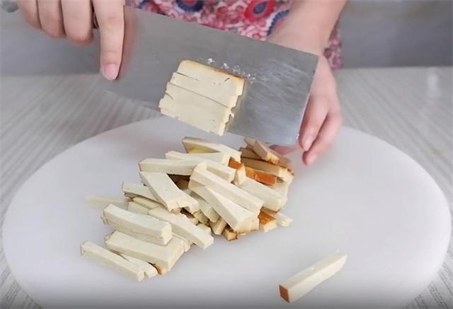 1.今天用香干做一道下饭菜,香辣过瘾,非常的不错。买一块香干,切成条状备用。(www.ws46.com)