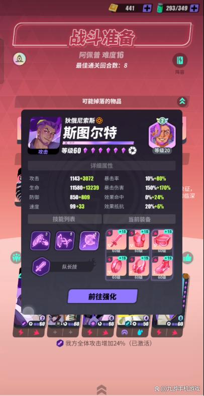 阵容方面一般是1个主C,一个副C,一个治疗,一个辅助,再带一个控这套组合基本可以在保证输出的情况下,提高队伍的生存能力。装备方面个别角色要带命中,有时挂不上破防真的打不动啊。