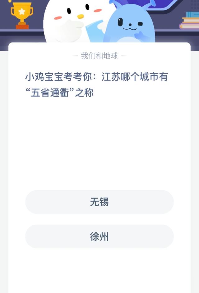 当前位置:首页>科技>江苏哪个城市有五省通衢之称?蚂蚁庄园每日答案