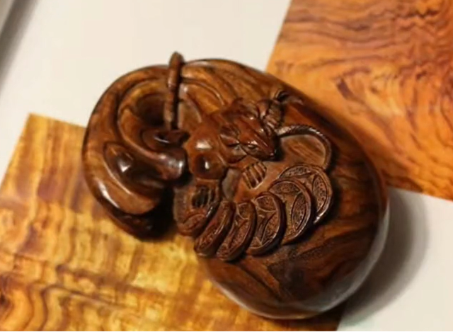 有的壶它就钻了一个小眼为了重量能多留一点,那它的重量可能多出两三倍,笔筒也是它的壁和底能差出很多重量,再就是不同的料子它的克价也是不同的表现,比方图片中这两件都是海南黄花梨的野生林老料,一件长寿茄,一件钱袋的手把件,像这件长寿茄它的克价差不多也就在15左右,但这件钱袋本身就是油梨老料,然后还有名家的落款,那这种的话克价就要在30以上了,所以不同的料子差距还是很大的。 |