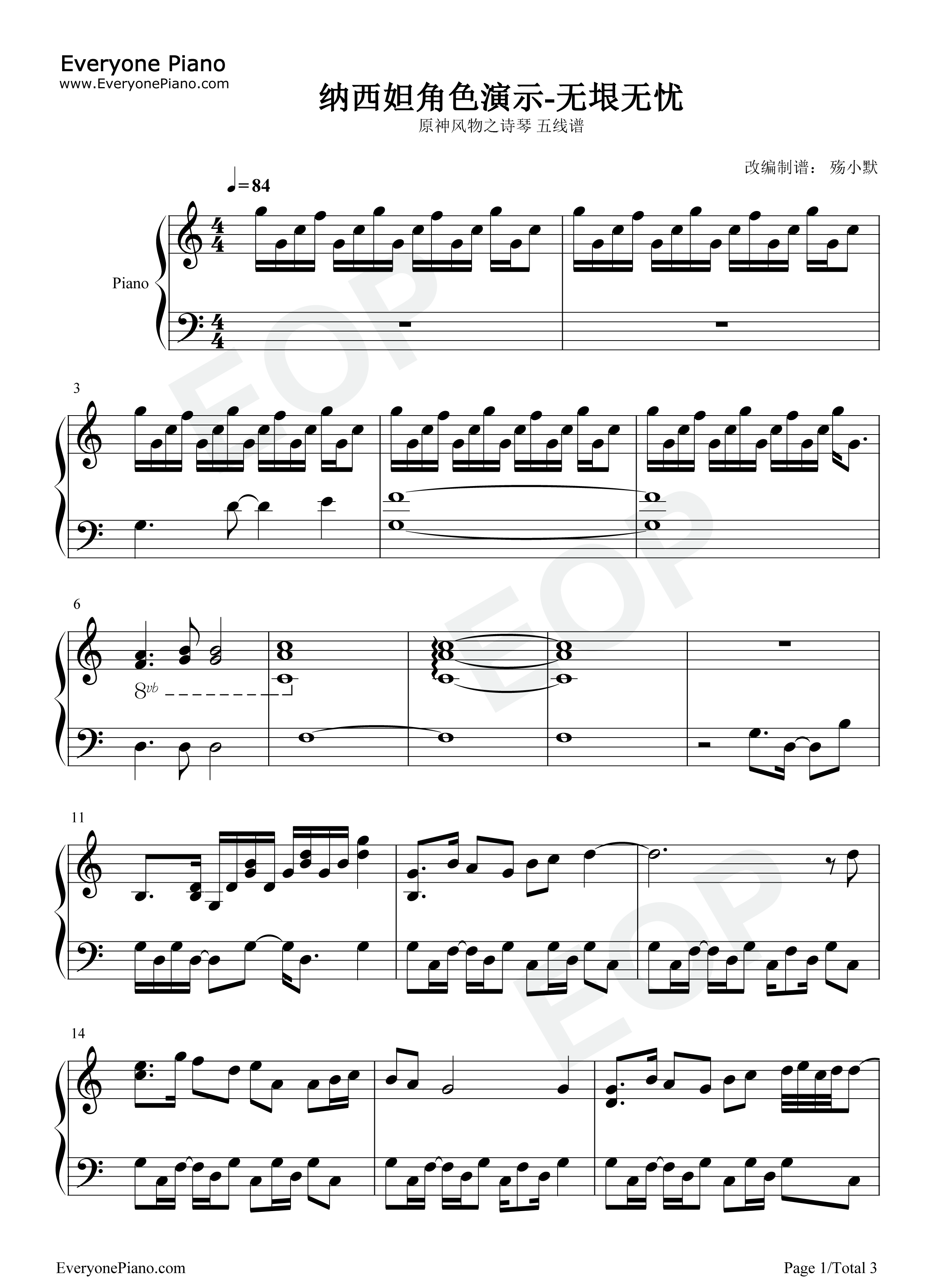 当前位置:首页>娱乐>无垠无忧钢琴谱-陈致逸 HOYO-MiX