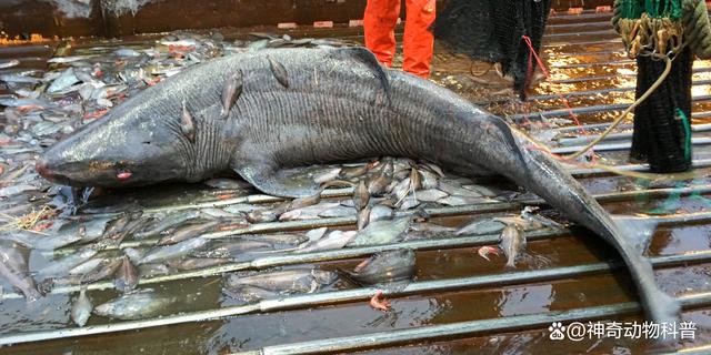 皇带鱼,又被称为龙宫使者,在海洋中是最长的硬骨鱼之一。它在水面上很少被人们所见,偶尔有人会将其误认为海蛇。皇带鱼的身体呈扁平状,呈带状延伸,大部分个体的体长可达4米以上,重量超过150公斤,而最长的个体可达7.6米。皇带鱼的游动速度较慢,属于肉食性鱼类,具有凶猛的性情,同时还表现出同类内部残杀的行为。它主要以各种中小型鱼类、乌贼、磷虾和螃蟹为食。 4、格陵兰睡鲨(7米)