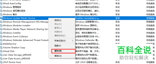 3. 第三步在右侧列表中,先找到并右击【Windows Update】,接着根据下图所示,点击【属性】选项。