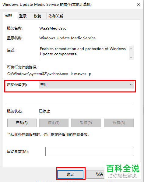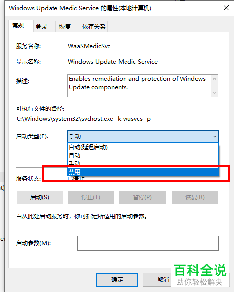 4. 第四步打开【属性】窗口后,根据下图所示,将【启动类型】设置为【禁用】。