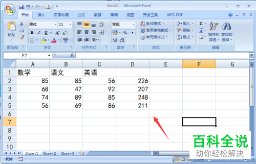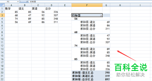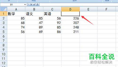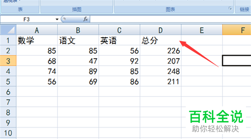8. 如图,返回表格,在上方可以看到有一个空白单元格,在该单元格内需要添加一个名称,以【总分】为例。