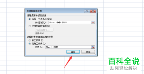 9. 添加之后,重新进入创建数据透视表窗口中,将刚才添加的数据区域重新添加一次,最后点击【确定】即可。