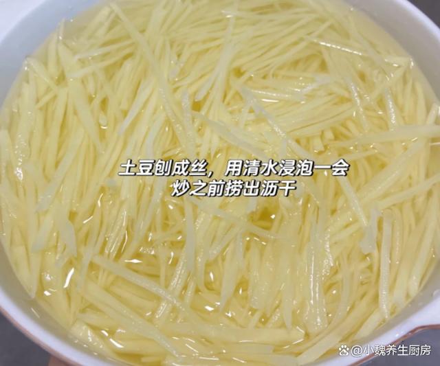 一晃眼夏天就结束了,迎来非常凉爽的秋季,秋高气爽,让人心情大好,最近也不是特别忙,有很多空闲的时间,每天可以在家吃饭,晚饭也是简单做几个菜。我们家生活非常简单,三个人一般是三菜一汤,今天分享其中一道快手菜——泡椒土豆丝炒牛肉,主要选用牛肉和土豆搭配而成,土豆非常脆爽,牛肉的口感非常嫩滑,两种食材搭配,相得益彰,让人食欲大开。许多人肯定没有吃过这道泡椒土豆丝炒牛肉,不妨跟着小编具体看一看吧。秋季,无论多忙,多给家人吃这菜,营养解馋,孩子老公都爱吃。  【泡椒土豆丝炒牛肉的详细做法】 食材明细:选购新鲜土豆320克左右(土豆又叫马铃薯,分为黄心土豆或白心土豆,个头也有大小之分,大一些的土豆适合炒着吃,搭配各种肉类是绝配),泡椒若干个,若干根香葱,选购新鲜猪肉里脊(要选择肉质鲜艳,摸起来有弹性,肉质特别鲜嫩,适合炒来吃,搭配各种食材一起吃),若干个大蒜头,姜片若干片,少许料酒,食盐少许,鸡精和味精少许,小米辣若干个,其他佐料。 详细制作顺序:1:提前选购好牛肉里脊,土豆和其他食材,先把土豆外皮洗干净(主要是清洗掉表面的泥土),去掉土豆的外皮。 2:将土豆表面的黑点去掉,先把土豆切成片状,切成若干细丝,土豆丝放在容器里,加上适量清水,浸泡出里面的淀粉,洗净控干表面的水分。3:将小葱洗净切成小段,小米辣和泡椒洗净去蒂,切成若干小圈,姜蒜切碎成细末,备用。 4:牛肉彻底洗干净,改刀逆纹路切片,记得牛肉一定薄一些,牛肉用手摔打,放在容器之中。5:牛肉用少许料酒去腥,加上少许生抽,调入半勺生粉或淀粉,也可以调入半勺食盐,最后滴入食用油,锁住牛肉的水分,让牛肉的口感超级鲜嫩。 6:锅底提前烧热,加上适量食用油,烧热后滑入牛肉,大火快速爆炒至7分熟,盛出备用。