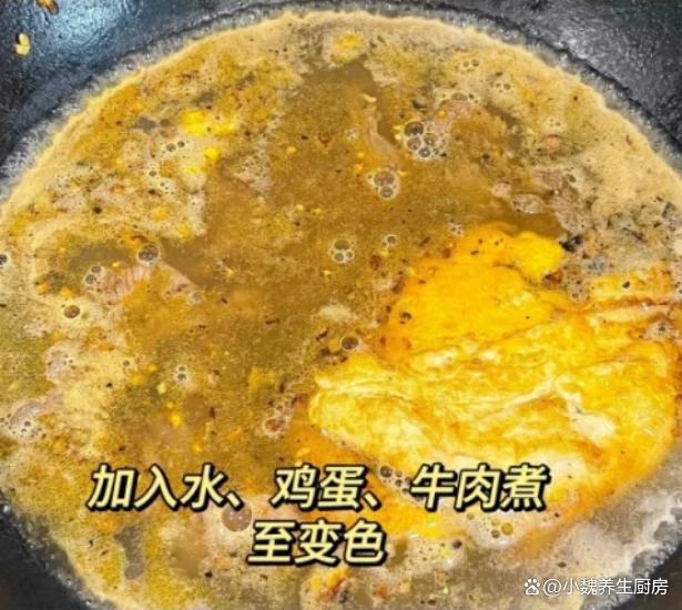 第七步:放入煎好的鸡蛋和牛肉,将牛肉烫至变色,下入豆芽和豆腐块,炖煮一分钟左右。 第八步:调入半勺味极鲜,加上鸡精半勺,胡椒粉半勺,少许食盐,丢入一些葱花点缀即可,这款牛肉豆芽煎蛋豆腐汤就制作完成了。 牛肉豆芽煎蛋豆腐汤是一款营养美味的菜品,此汤选用牛肉,豆芽,豆腐和鸡蛋制作而成,保留各种食材的营养,汤品非常美味,补充各种营养,帮助刺激味蕾,让食欲越来越好,错过就太可惜了。