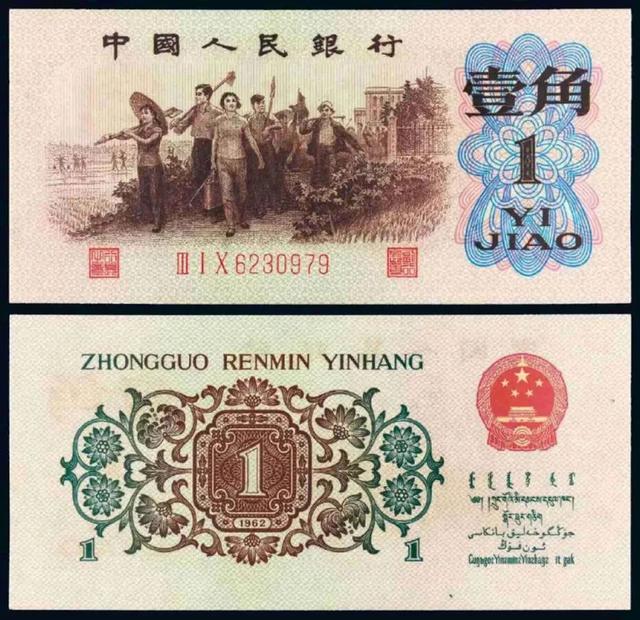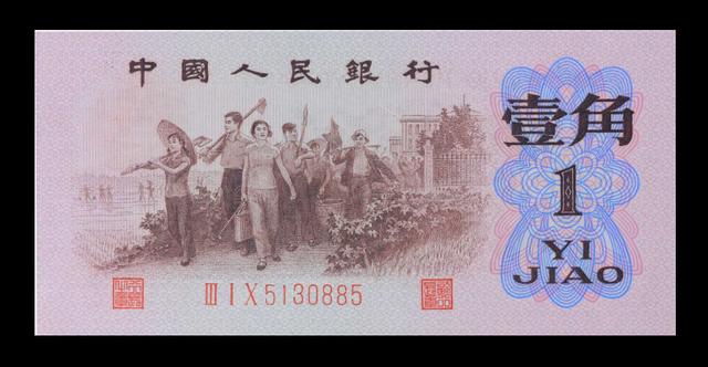 其中最早发行的,是1960年1角纸币。它因为整体呈现枣红色,被称为枣红1角。 这种纸币仅仅流通了不到1年时间,就只收不付,继而推出了1962年1角。