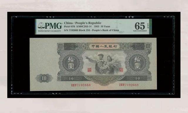 在去年杭州宜和的春拍中,一版币币王—10000元牧马图纸币,就拍出了1725万,创下我国纸币的新高。 它的品相完美,PMG评分达到53分,十分罕见。