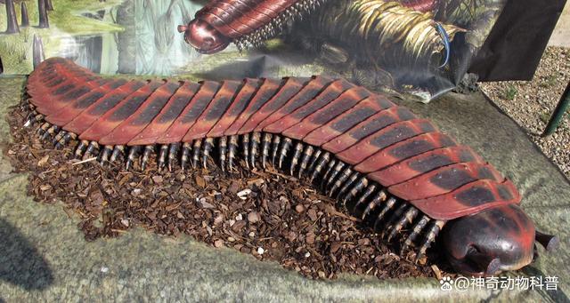 邓氏鱼是一种史前鱼类,生存在大约3.6亿至4.3亿年前的古生代泥盆纪时期。它是一种巨大的古生物,身长约11米,重达6吨,咬合力可高达5吨。邓氏鱼被认为是泥盆纪时代海洋中最大的猎食者,同时也是寒武纪到泥盆纪时期出现过的最大的食肉硬骨鱼类,因此没有天敌可言。它主要捕食鱼类和无脊椎动物,有时候甚至会吃同类。邓氏鱼具有极强的咬合力,能够一口咬碎鲨鱼,同时还可以借助吸力将猎物吸入口中。 7、远古蜈蚣虫