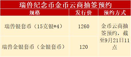 在实物图中,我们能够看到镶嵌的宝石极为亮眼,不仅有明显的凹凸感,而且宝石底座也经过了精心设计,添加了光变鳞彩工艺。 不知道大家是否喜欢这次瑞兽纪念币的设计呢? 百科网个人认为,它们的颜值是属于金银币中的第一梯队的。 开始预约虽然公告中提到,这套纪念币要到9月15号才正式发行。 不过按照惯例,金总的金币云商,已经提前开启了抽签预约。