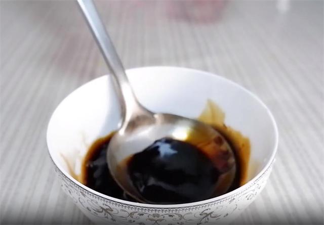 4.再取一个大碗,加入一大勺的酱油、半勺陈醋,少量的老抽和素蚝油,最后加入少量的糖搅匀备用。