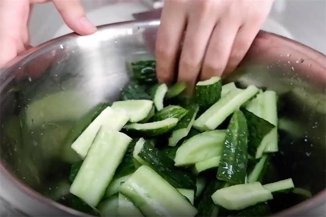 2.切好后装入盆中,加入2到3勺的盐,抓匀杀水20到30分钟。