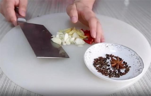 3.这个时间切一些姜蒜小米辣,再准备一些花椒,一个八角。