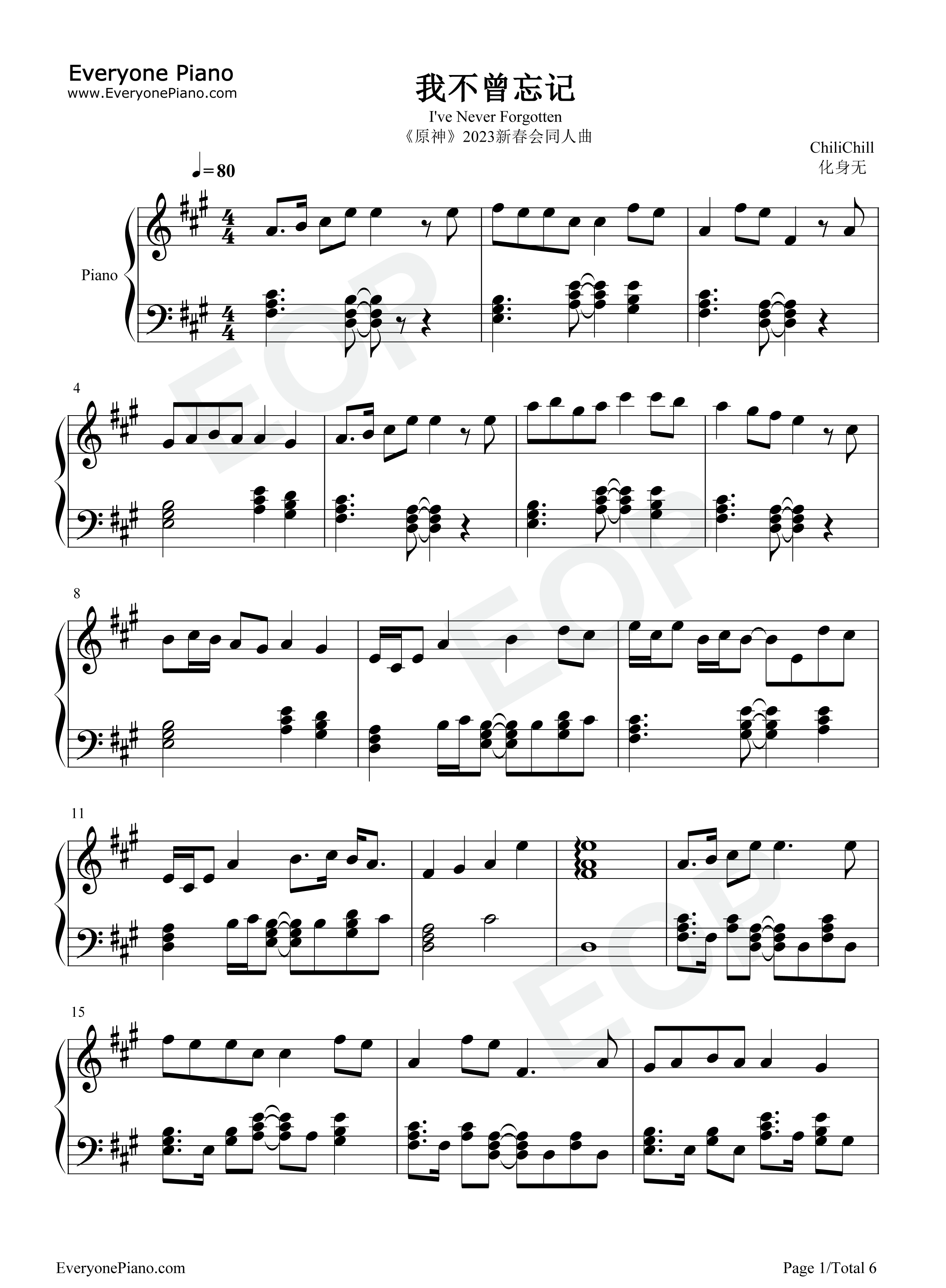 《我不曾忘记》是米哈游游戏《原神》同人节目《2023原神新春会》上播出的同人原创单曲。由ChiliChill填词、作曲,花园花玲、半甜气泡安小琪、沐霏Moeki_、再见动物园合唱团共同演唱,于2023年1月20日发布于哔哩哔哩弹幕网,于2023年1月22日零点上传至各大音乐平台。 歌词很棒,非常契合每个角色的特色!高潮的童声带来一瞬间的惊愕之后还有很多的感动!句句不提原神但句句离不开原神!整首歌的调子朗朗上口且非常温馨,很容易不知不觉就跟着哼唱起来。
