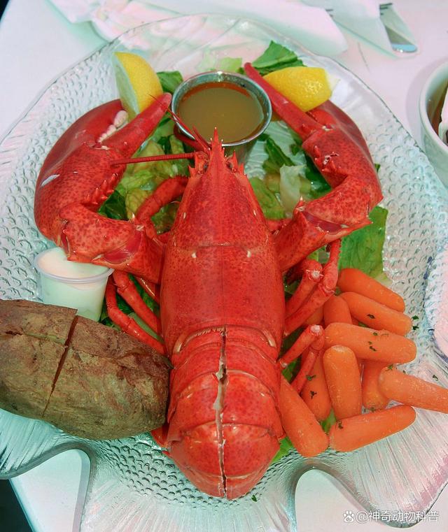 龙虾(Lobster)是海洋中体型最大的虾类,它们广泛分布于地中海沿岸直到北海地区。澳大利亚和南非产的龙虾质量最佳,而中国主要产自东海和南海,其中广东南澳岛的产量最多。夏季和秋季是龙虾的旺季。龙虾肉质肥美,富含营养,味道鲜美,是一种珍贵的水产品。民间常将龙虾蒸或煮熟后剥壳取肉,再蘸上姜醋等调味料食用。在西餐中,龙虾可以作为冷菜或热菜,被视为高档的烹饪原料。 15、波士顿龙虾