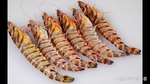 明虾,也被称为中国对虾、中国明对虾、对虾、东方对虾、海捕大虾,在日本被称为“大正虾”。它们的雌性通常呈青色,而雄性则呈棕黄色,因此也被称为青虾或黄虾。明虾的肉质鲜嫩,味道美味,且营养丰富。每百克的虾肉含有18.6克蛋白质和0.8克脂肪,还富含多种维生素和人体所需的微量元素,堪称高蛋白营养的水产品。可用于制作红焖大虾、煎明虾、溜虾段、琵琶大虾、炒虾仁等美食。此外,明虾也可加工成虾干、虾米等高品质的海味食品。中国对虾作为我国水产品出口的主要产品,深受欢迎哦! 2、斑节虾