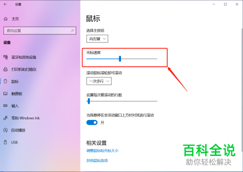 5. 第五步根据下图箭头所指,按照需求设置光标速度。