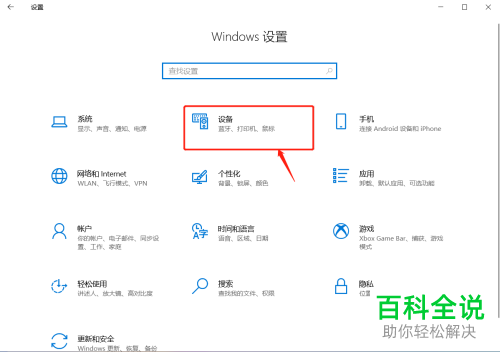 2. 第二步打开【设置】窗口后,根据下图箭头所指,点击【设备】选项。