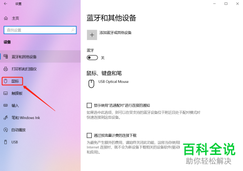 3. 第三步进入【设备】页面后,根据下图箭头所指,点击左侧【鼠标】选项。