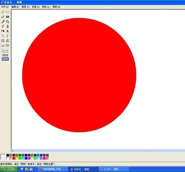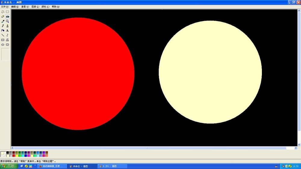7、把背景填充回白色,把刚刚画出的任意颜色圆用选择工具选择拖到红圆内,也填充白色。(我的任意颜色圆不合适,慢慢调整就好)。