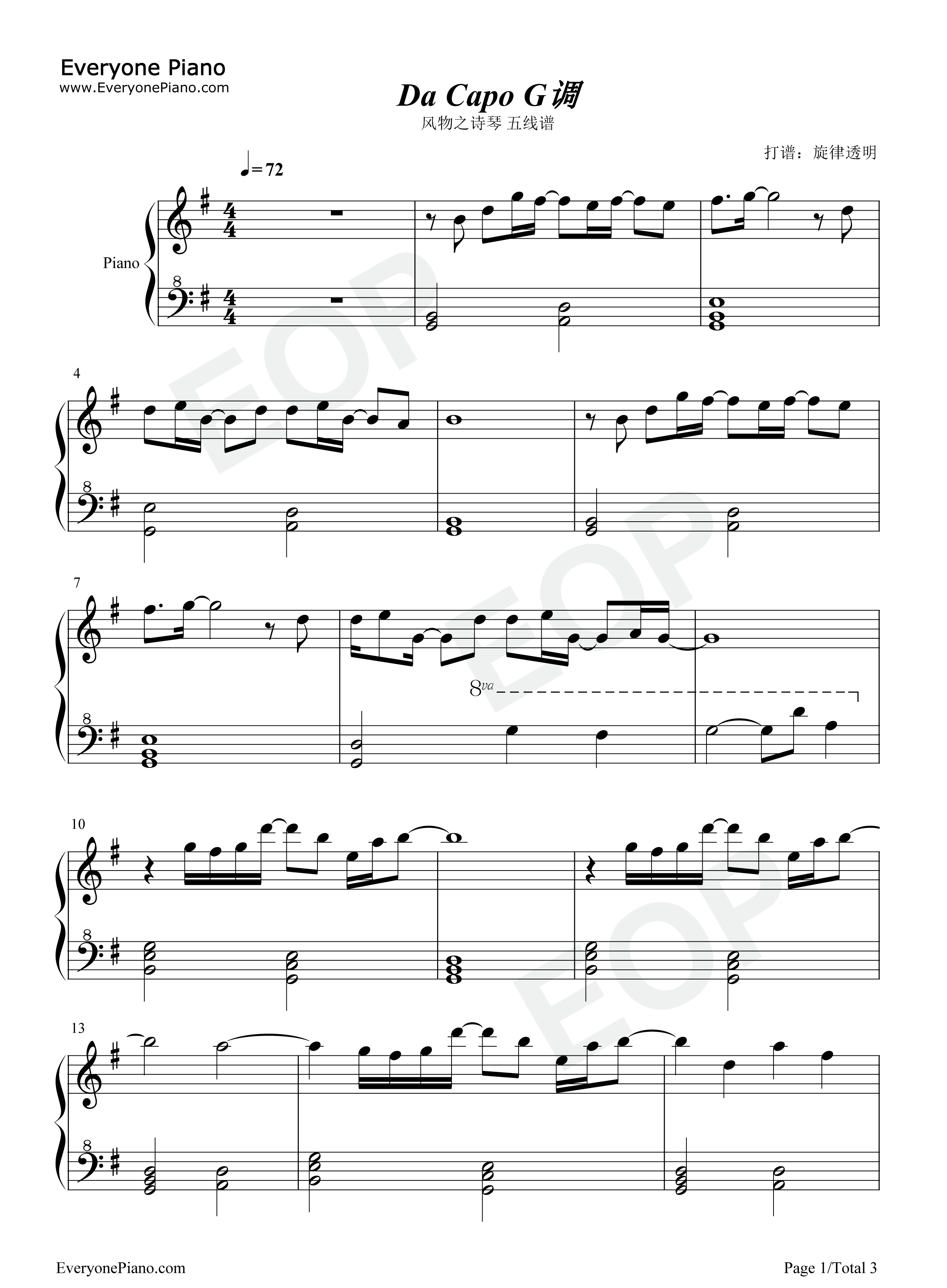 当前位置:首页>娱乐>Da Capo钢琴谱-车子玉Ziyu Che