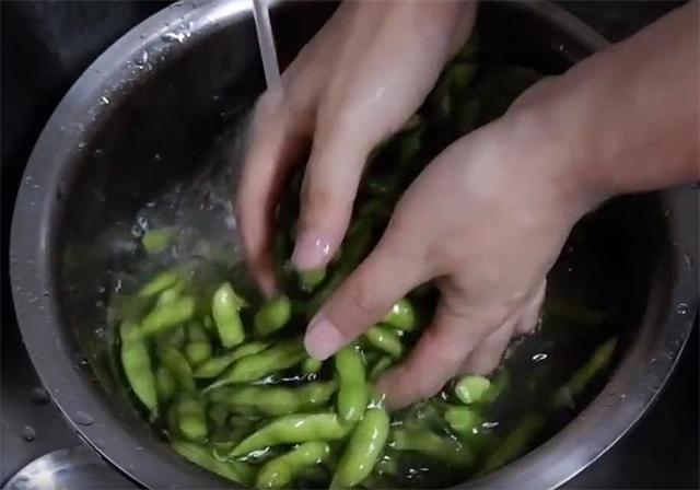1.秋天到了,又到了吃毛豆的时候,今天咱们就做一个好吃的十三香毛豆,掌握两个小技巧,毛豆入味好吃,外表翠绿。准备二斤毛豆,先用水冲洗一下,毛豆的表面很脏,洗的时候一定要用手搓一下。