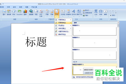 二、在“页码”图标下拉菜单栏,选择其中的“页面低端”——“x/y”类型的页码格式: