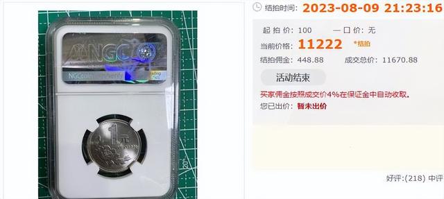 在8月中旬有一枚少见的牡丹一元硬币,拍出了11670,注意它不是普通的牡丹一元,因为绝大多数人根本就没有机会可以遇到它,也不会使用过它,所以它才能成为最珍贵的牡丹一元,甚至是不用加之一。