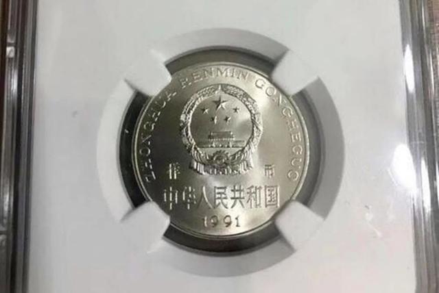 不过他也不是今天要说的牡丹一元,因为还有更珍贵的工作币,拍出1万多的就是一枚1991年的工作币,它和普通的91年一元相比,有一个明显的区别,就是在硬币正面的两侧,多了两个小小的汉字。
